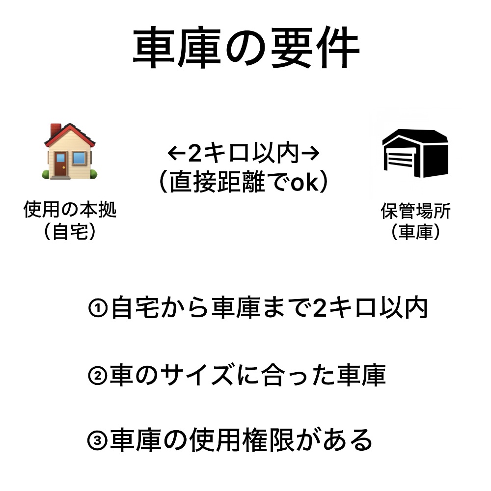 保管場所は使用の本拠(自宅)から2キロ以内の場所に用意する必要があります。