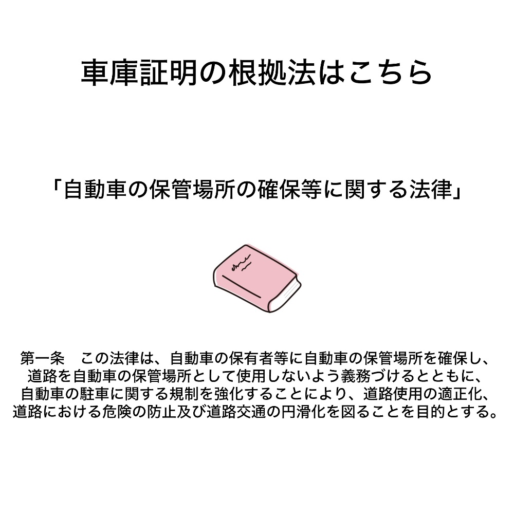 車庫証明とは、車の保管場所が確保されていることを警察が証明するもので、車の登録をする際などに、車庫証明が必要となります。