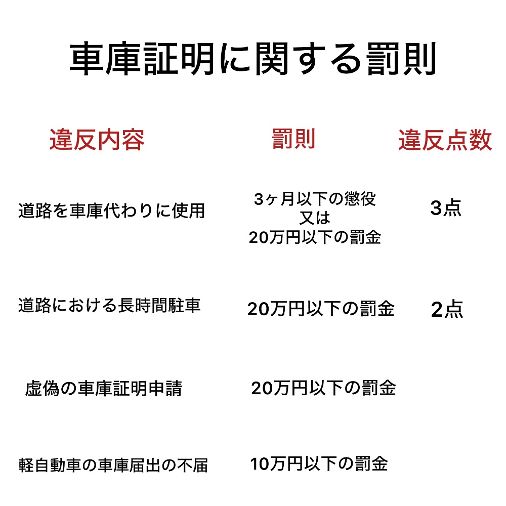 自動車の保管場所の確保等に関する法律により、次の様な罰則が定められています。
